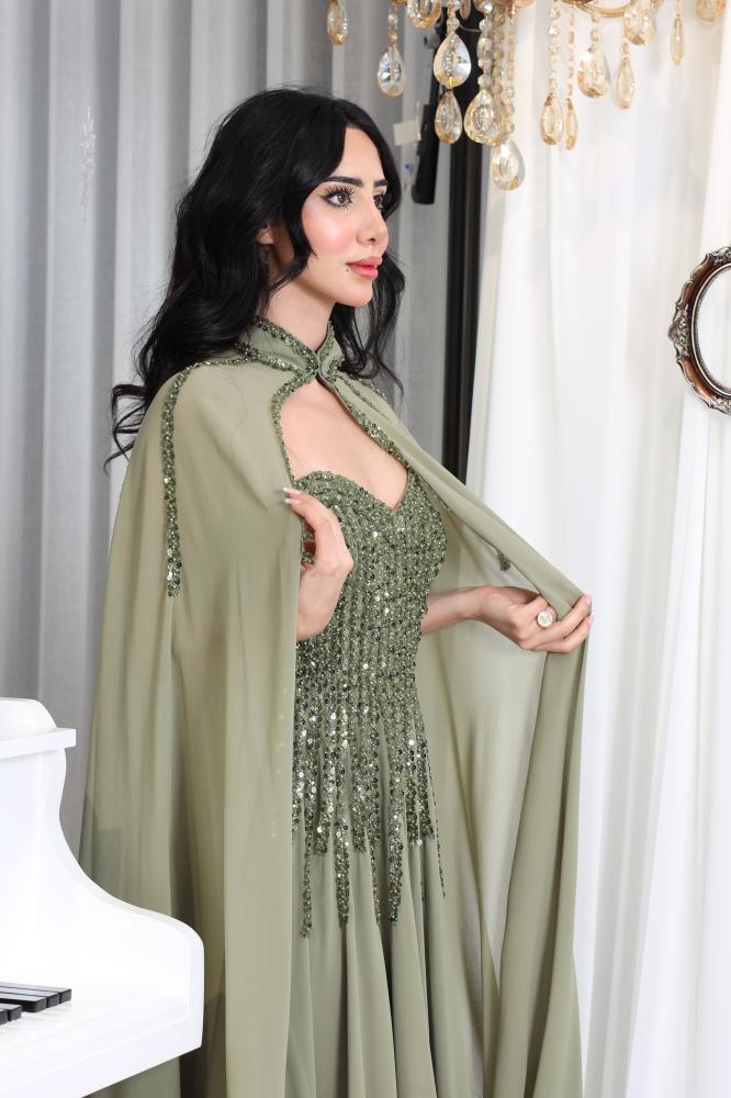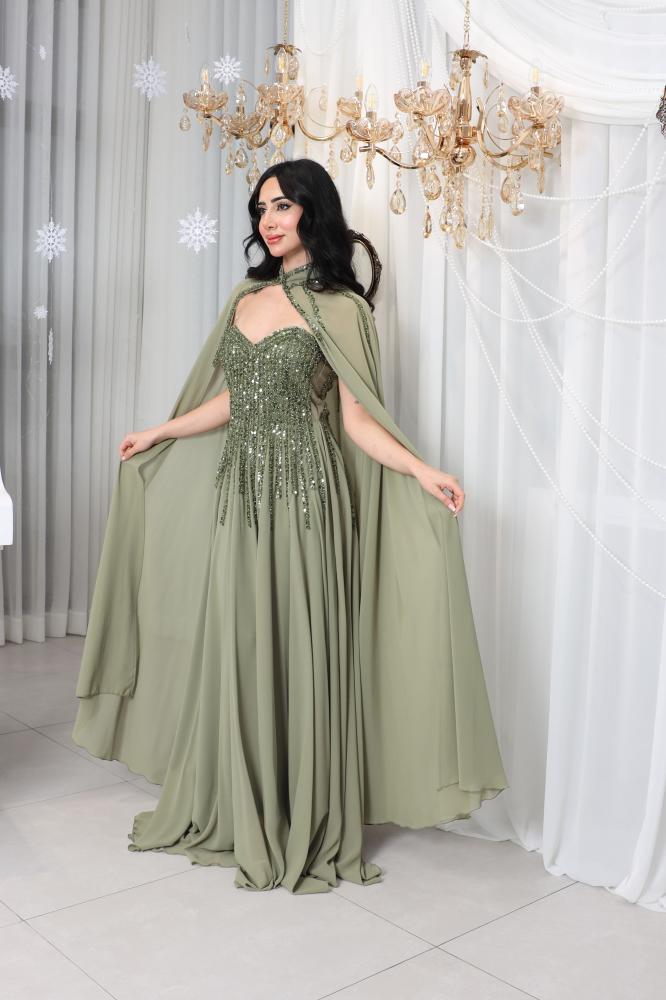 فستان سهرة أنيق بلون أخضر زيتوني هادئ